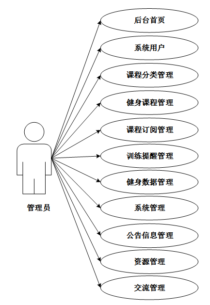 管理员在后台系统中主要负责管理平台的各项核心内容和服务。通过后台首页,管理员能够实时查看系统的整体运行状态,包括用户活跃度、课程订阅情况等关键数据。系统用户管理功能让管理员可以全面掌控平台上所有用户的账号信息,进行账户管理、权限控制等操作。课程分类和健身课程管理功能使管理员能够设置和调整课程内容及其分类,确保内容的多样性和用户的需求匹配。通过课程订阅管理模块,管理员可以查看用户的订阅情况,管理和优化课程的发布与调整。此外,训练提醒管理帮助管理员设置定期的训练提醒,以增强用户的健身黏性。健身数据管理功能则允许管理员跟踪用户的健身数据,如运动量、卡路里消耗等,为用户提供个性化服务。管理员还可以通过系统管理功能更新平台内容,例如轮播图的修改和公告信息的发布。资源管理模块支持新闻资讯和资讯分类的管理,确保平台内容的丰富性与时效性,而交流管理则让管理员可以维护平台社区的秩序,确保用户在互动过程中能够获得积极的体验。