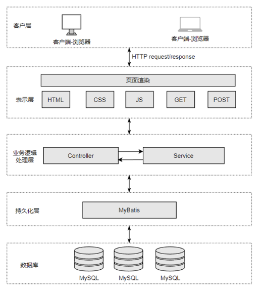 B/S(Browser/Server)架构是一种基于浏览器和服务器的系统架构模式,用户通过浏览器与服务器进行交互。B/S架构简化了客户端的部署和管理,用户无需在本地安装复杂的软件,只需使用标准浏览器即可访问应用程序。服务器端负责处理业务逻辑和数据存储,客户端则主要负责展示用户界面和数据交互[10]。B/S架构的设计使得系统更新和维护集中在服务器端,降低了维护成本。