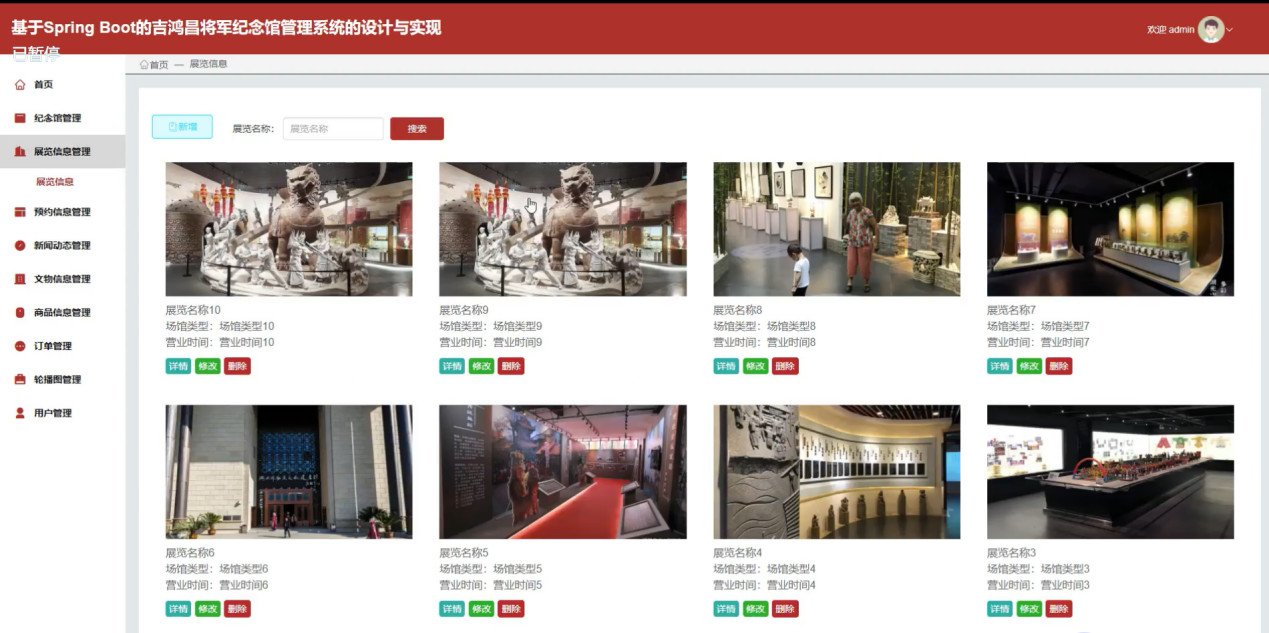 图5-12展览信息管理界面