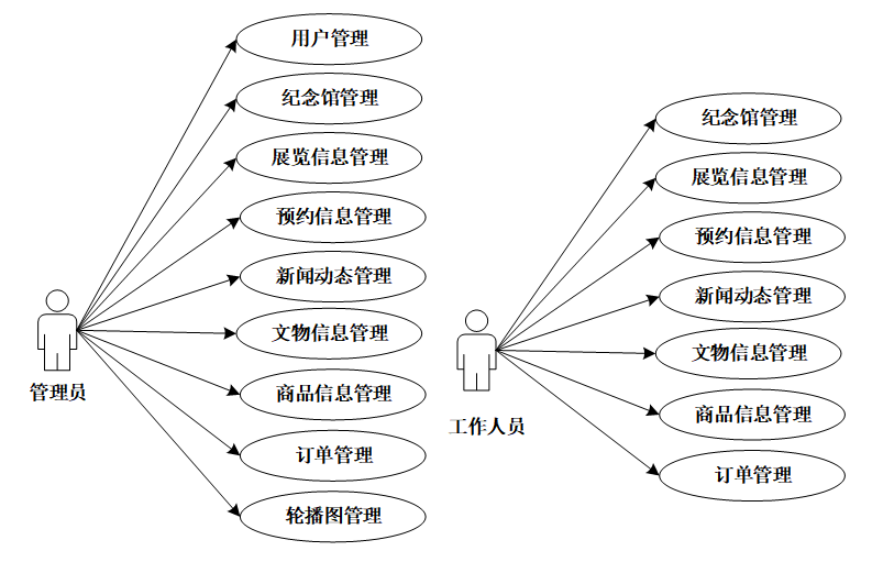 图3-2 管理员、工作人员用例图