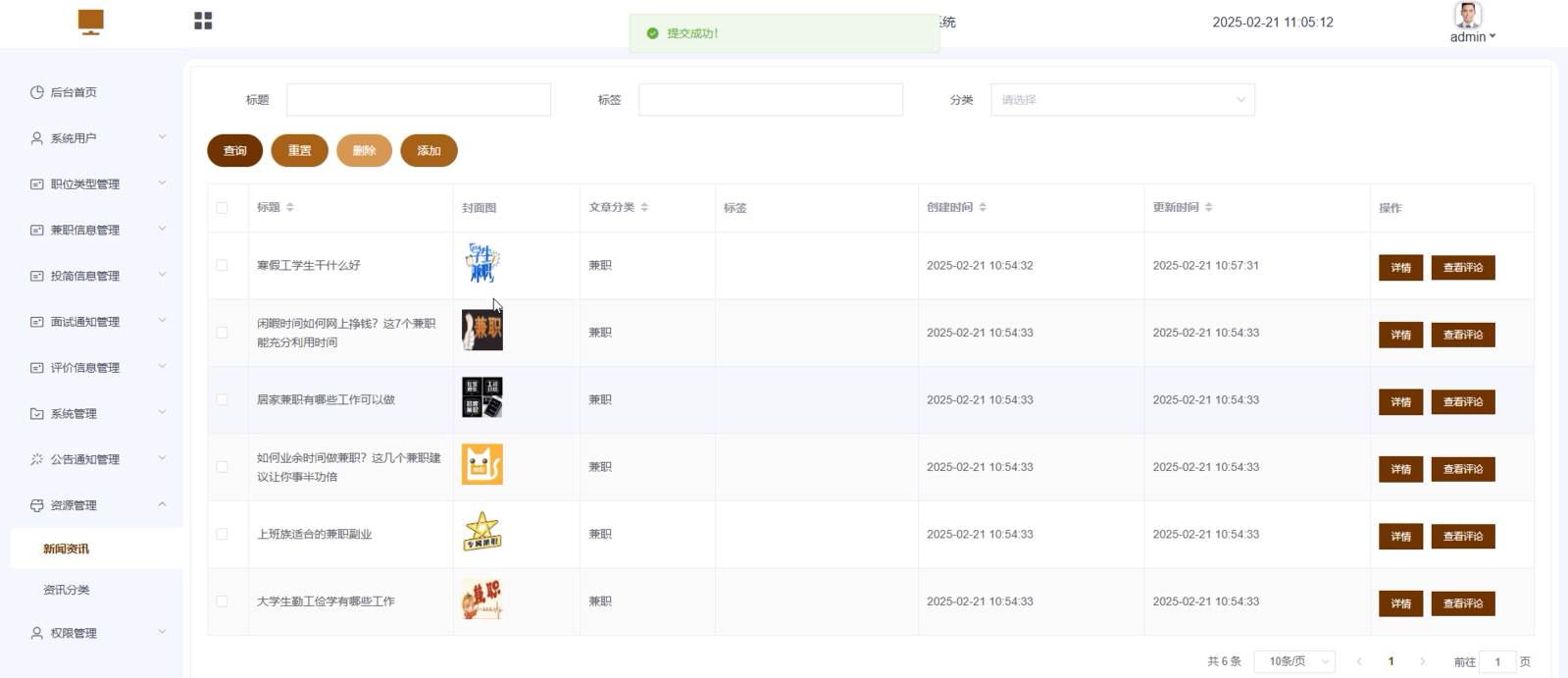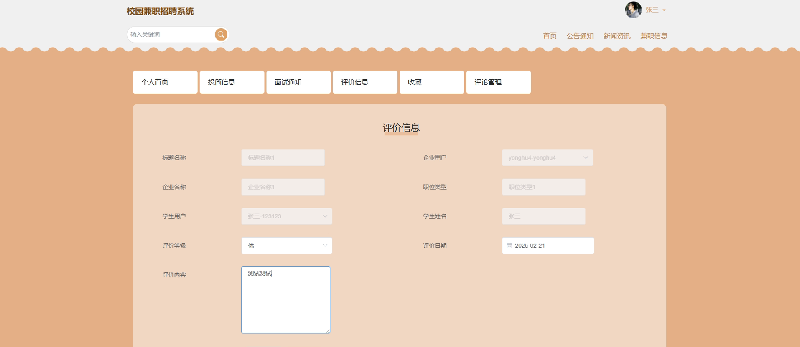 - 评论管理:学生可以管理自己在新闻资讯或兼职信息下的评论。