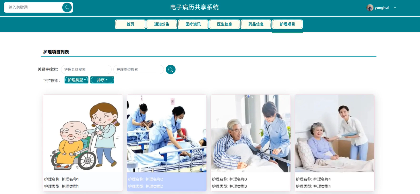 - 护理项目管理:包含护理信息列表和护理信息添加功能。护理项目列表:主要管理所有护理项目,支持增删改查等操作。护理项目添加:主要是添加新的护理项目数据。