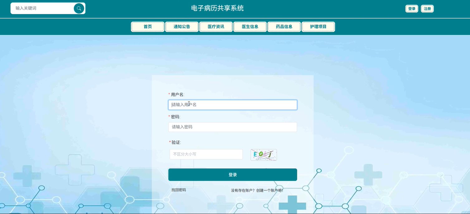 - 用户登录:医生用户需要管理员审核通过后才可以登录。首先点击“登录”按钮,输入用户名、密码、验证码登录系统,登录时前端会自动校验用户名与密码,用户输入正确则登录成功,输入错误会有提示信息。