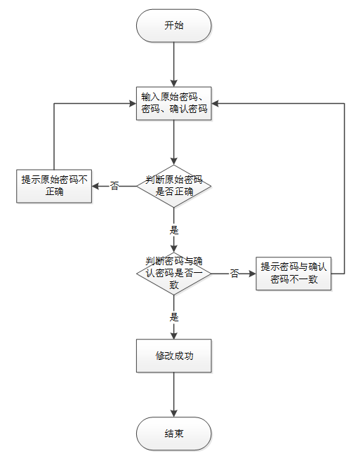所有用户可以我的账户信息页面,点击修改修改密码进行修改登录密码操作,修改密码流程如图所示: