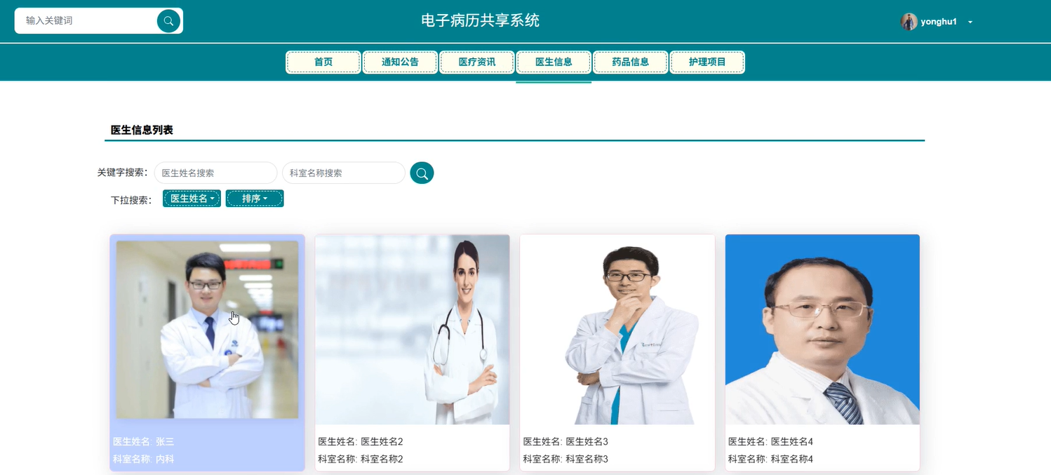 In terms of technical implementation, the system encompasses multiple core modules, including doctor information management, nursing project management, examination information management, and drug information management. The doctor information management module implements the entry, query, and modification of basic doctor information; The medical information management module records the user's medical history, diagnosis report, and treatment plan, which facilitates doctors to quickly understand the user's condition. The system also implements the whole process information management of admission application, discharge management, and medical information, admission, hospitalization arrangement, and discharge, effectively improving the efficiency of the hospital. Overall, the system is comprehensive in function and easy to operate, providing strong technical support for electronic medical record sharing systems, with high practical value and social significance.