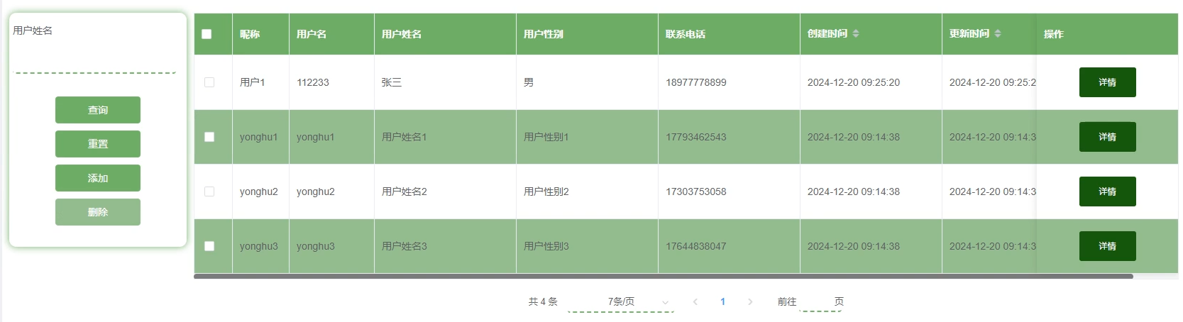 管理员登录到后台系统之后,点击“用户管理”模块,就能够看到全部已注册的普通用户,管理员可通过搜索框输入用户名来实施查找,若要对某个用户执行编辑或者删除操作,只需点击用户列表中的相应项即可。普通用户管理功能效果图如图5-8所示。