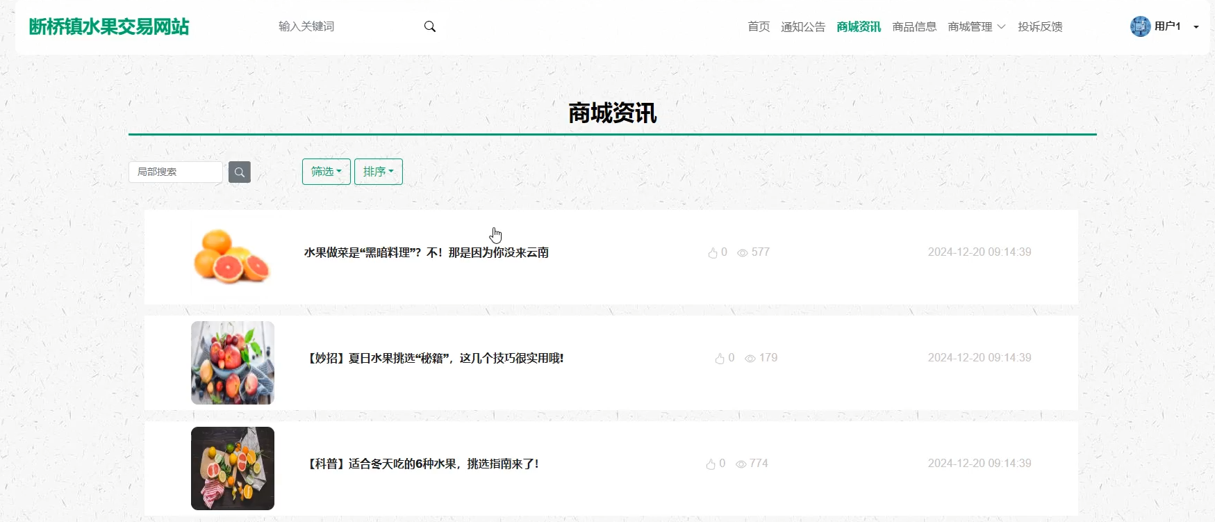 断桥镇处于贵州省中部,其海拔较低,温度适宜,降水量高,气候宜人,有“水果之乡”之称。得益于得天独厚的地理优势和丰富的农业资源,成为当地水果生产的重点基地。随着人民生活水平的提升以及健康饮食观念的推广,水果成为人们日常生活中不可或缺的农产品。断桥镇的水果有良好的口感和天然的生产方式,逐渐受到周边城市以及外地消费者的好评。但是,断桥镇的水果交易依旧沿用传统的市场交易形式,大多依靠线下摊贩和顾客的面对面交易,造成交易效率低、信息不对称、价格波动大等情况。随着大数据、互联网的不断发展,线上交易平台成为消费者的主要购物方式,而断桥镇的水果销售并没有充分利用线上交易平台,导致水果不能及时卖出烂在地里,农户收入不理想。如何利用线上交易平台提高水果交易的效率,解决传统交易模式中的各种弊端是目前需要解决的问题。因此,设计一个适合断桥镇水果产业的交易平台,对提高断桥镇水果销售的效率、拓宽销售渠道、提高市场竞争力具有重要的意义。