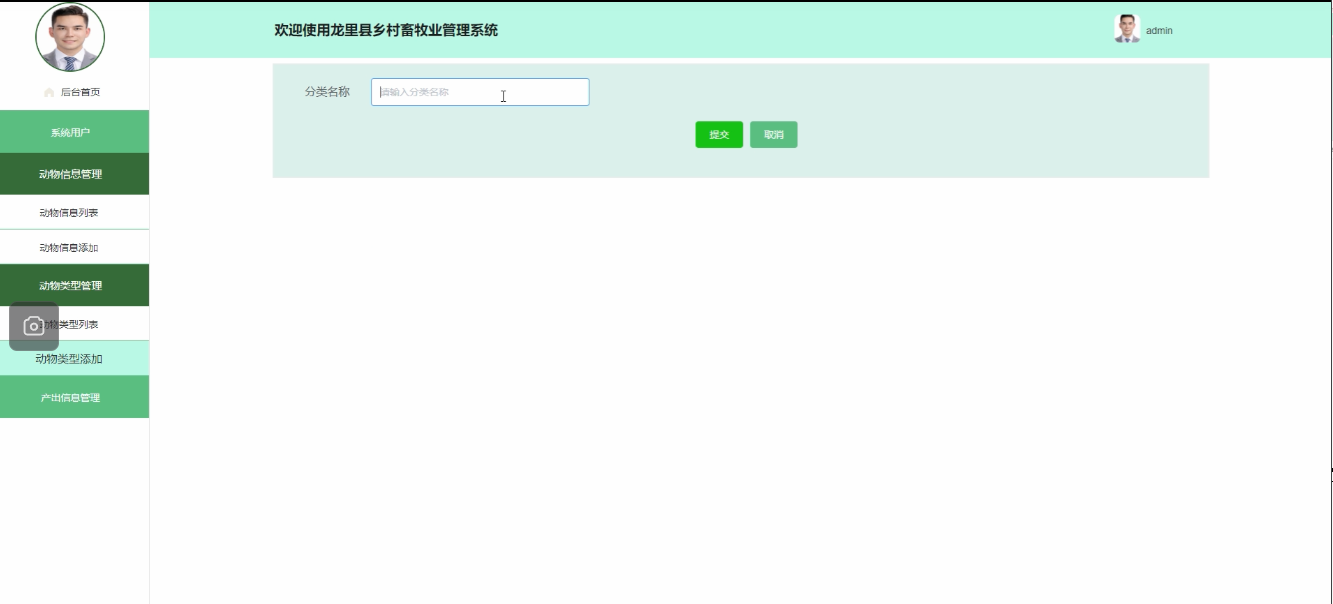 管理员可以查看动物类型列表,添加新的类型。界面如下图所示。