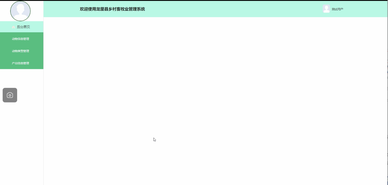 进入系统首页,用户可以看到动物信息管理、动物类型管理、产出信息管理等功能的快捷入口,其主界面展示如下图所示。