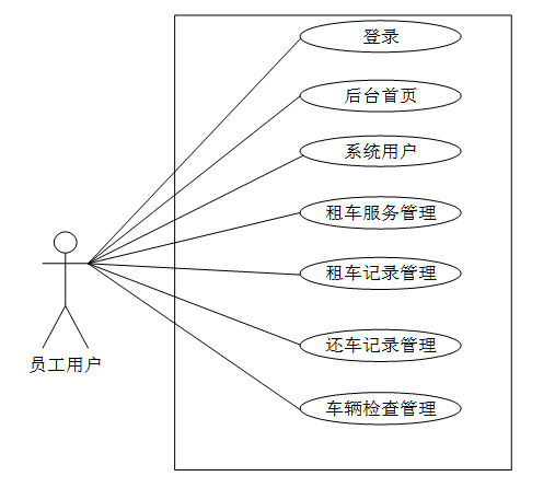 通过构建用例图,来更好的展示出员工用户这个角色所有的功能,如下。