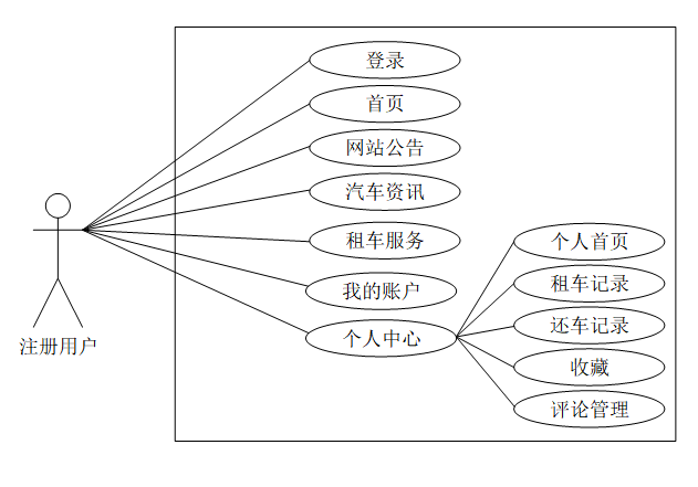 通过构建用例图,来更好的展示出注册用户这个角色所有的功能,如下。