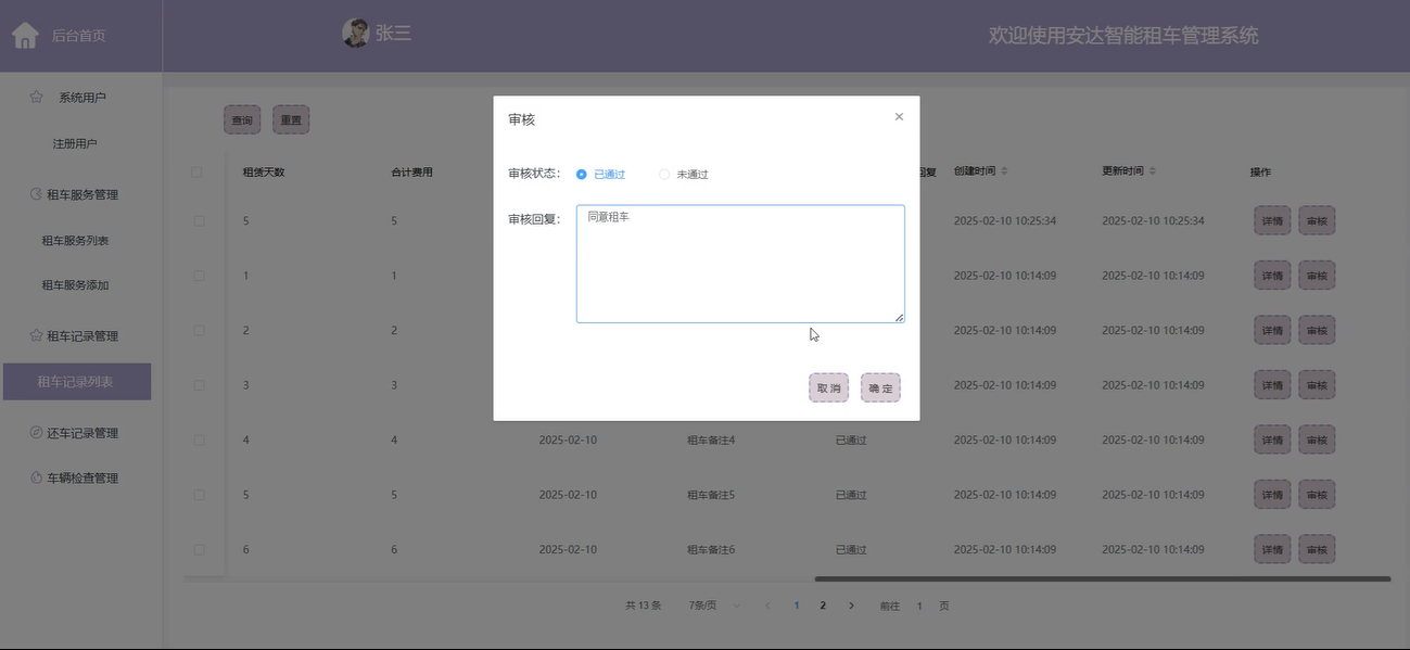 租车记录管理:管理员可以查看和管理所有用户的租车记录。管理员可以根据租车情况进行审核和修改操作,确保记录的准确性。