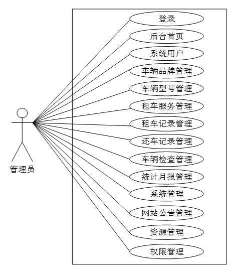 通过构建用例图,来更好的展示出管理员这个角色所有的功能,如下。