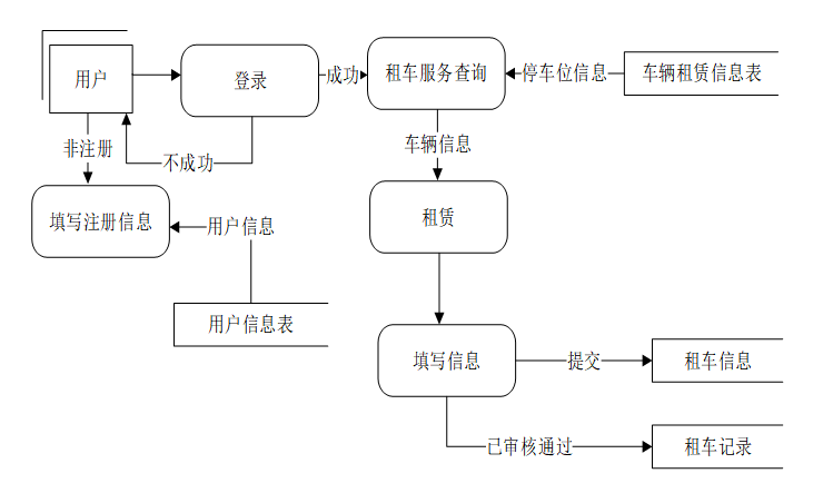 智能租车管理系统主要的目的就是实现对车辆的租赁管理,图2-7就是系统的数据流图。