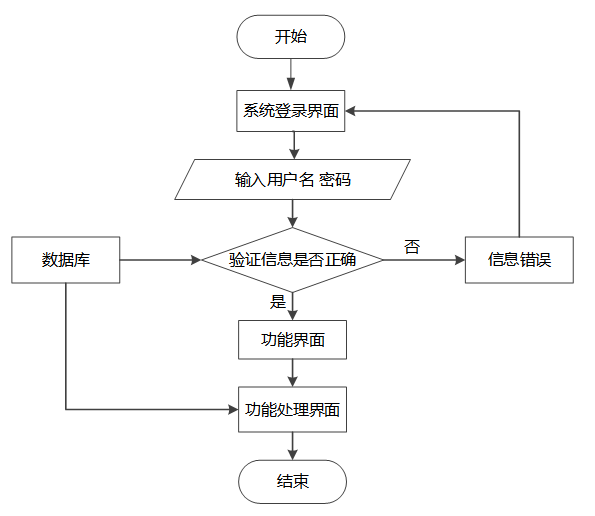 用户访问系统,进入登录页面,入其用户名和密码,后端服务接收登录请求,验证用户提供的用户名和密码是否匹配数据库中存储的信息,验证通过即可登录成功。登录流程图如下图所示。