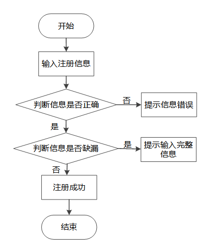 未有账号的用户可进入注册界面进行注册操作,填写注册表格,包括用户名、密码、电子邮件等必要信息。后台系统验证并保存用户提交的信息。分配唯一用户标识符。注册成功后,用户可以使用账号密码进行登录。用户注册流程图如下图所示。