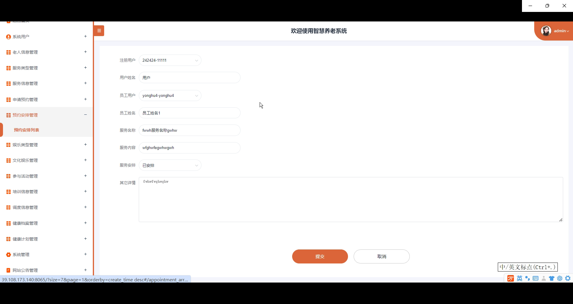 管理员可以通过“预约安排管理”模块查看所有预约的服务,并根据实际情况进行安排和调整。管理员能够重新安排或取消服务,协调不同时间段的资源使用,避免预约冲突。通过这一模块,管理员能够优化服务分配,确保用户能够顺利享受所预约的服务。界面如下所示。