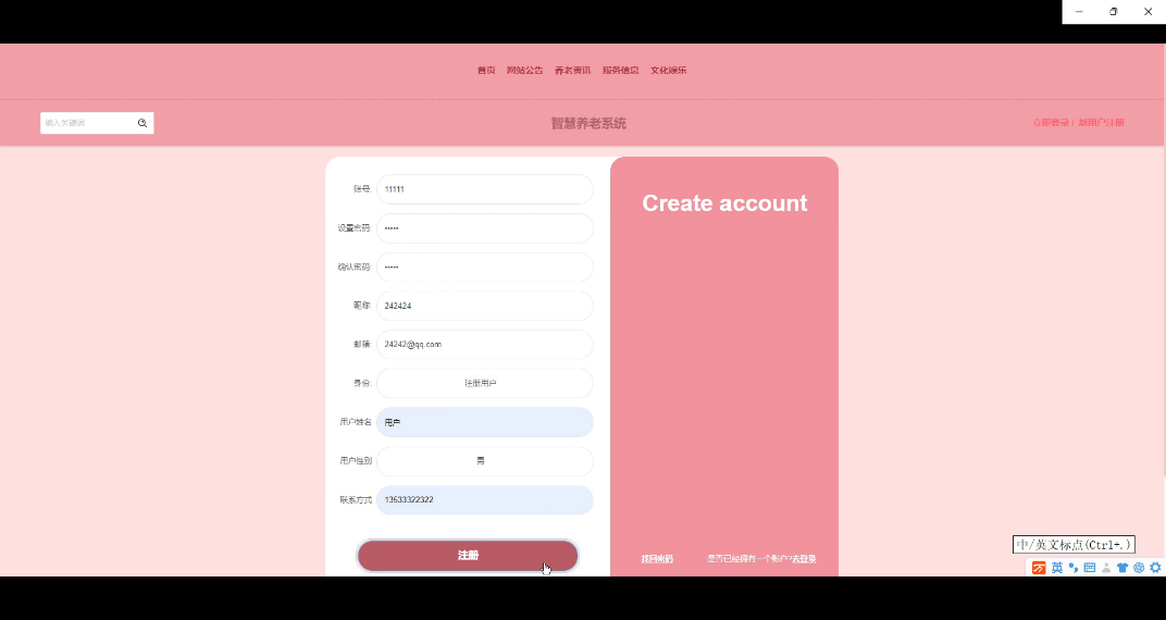 通过对用户注册、登录、查看养老资讯、申请预约服务和报名参与活动等功能模块的测试,系统在大多数情况下能够正确处理用户输入并给予合理反馈。所有正常操作均能顺利完成,如用户注册成功、登录验证通过、资讯正确展示、预约和活动报名无误。然而,针对错误输入或特殊情况(如用户名重复、密码格式不符合要求、活动已满等),系统能有效地识别并给出明确提示,保障了用户体验的流畅性和系统的稳定性。总体而言,测试结果表明系统功能健全,具有较高的容错性和用户友好性。
