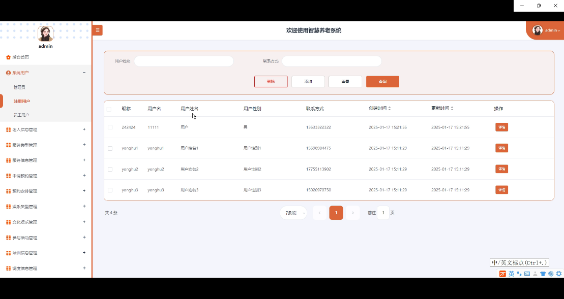 With the increasingly serious problem of aging society, the demand for elderly care services is constantly increasing. How to provide convenient and high-quality elderly care services has become an urgent issue to be solved. The traditional elderly care service model often suffers from problems such as information asymmetry, unreasonable resource allocation, and low service efficiency. Therefore, developing an integrated and intelligent elderly care service platform is particularly important. The system aims to provide a convenient elderly care service platform for the elderly and their families, covering multiple functions such as service appointments, health management, cultural and entertainment activities, etc.