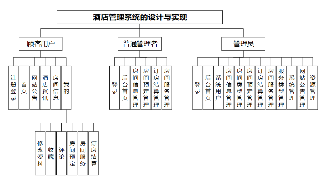 酒店管理系统划分为了前端模块和后端模块两大部分。