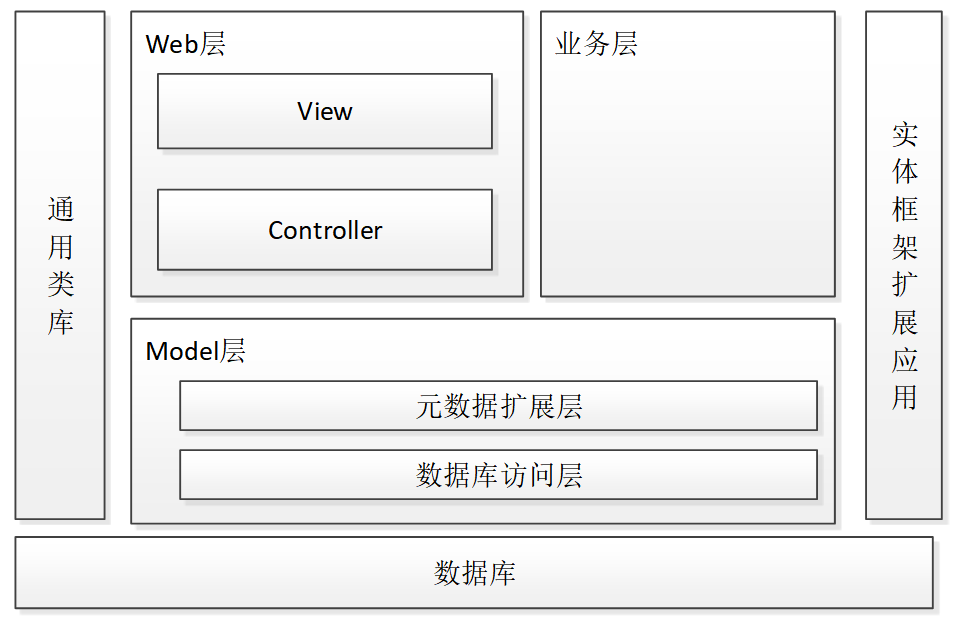 本大学生青年志愿者管理系统的架构设计主要分为可以3层,主要有Web层,业务层,Model层。其中web层还包括View层和Controller层,Model层包括元数据扩展层和数据访问层。