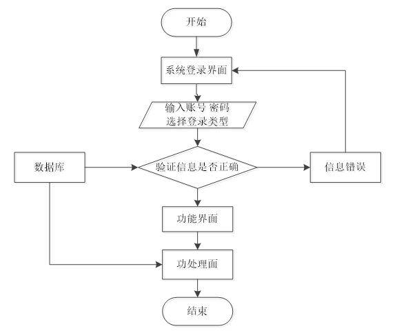 对于系统的安全性的第一关,就是用户想要进入系统,必须通过登录窗口,输入自己的登录信息才可以进行登录,用户输入的信息准确无误后才可以进入到操作系统界面,进行功能模块的相对应操作,如果用户输入的信息不正确,则窗口出现提示框,用户登录失败,返回到第一步进行重新输入,如图3-1所示。