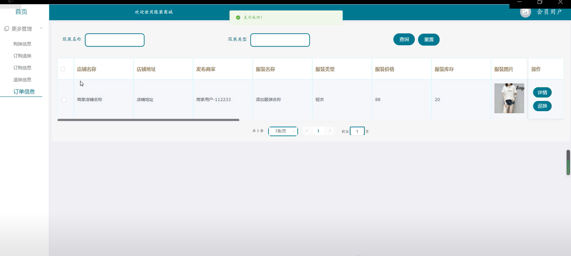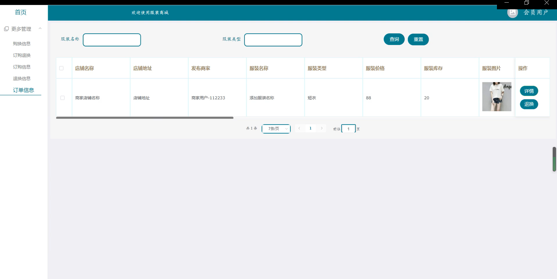 The rapid development of scientific and technological progress has caused great changes in people's daily life. The rapid development of electronic information technology has popularized and applied the application level of electronic information technology in various fields. It has become an irresistible trend of human history. In modern society, more and more people pursue convenient shopping. Buying all kinds of goods has become an indispensable part of people's life, but the traditional commodity sales model can no longer meet people's needs. Therefore, it is of great practical significance to develop commodity sales by means of informatization. The problem type of the software is clothing mall. It is designed for the management method of order information content in e-commerce industry. The purpose is to change the current manual or semi manual sales management mechanism, make order management more standardized and improve work efficiency.