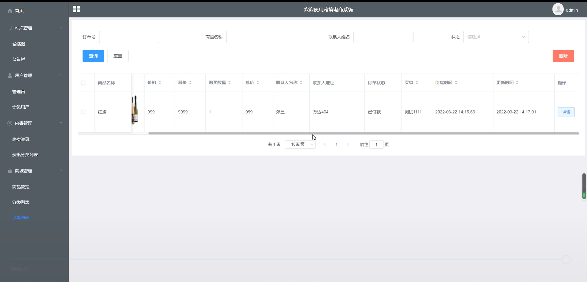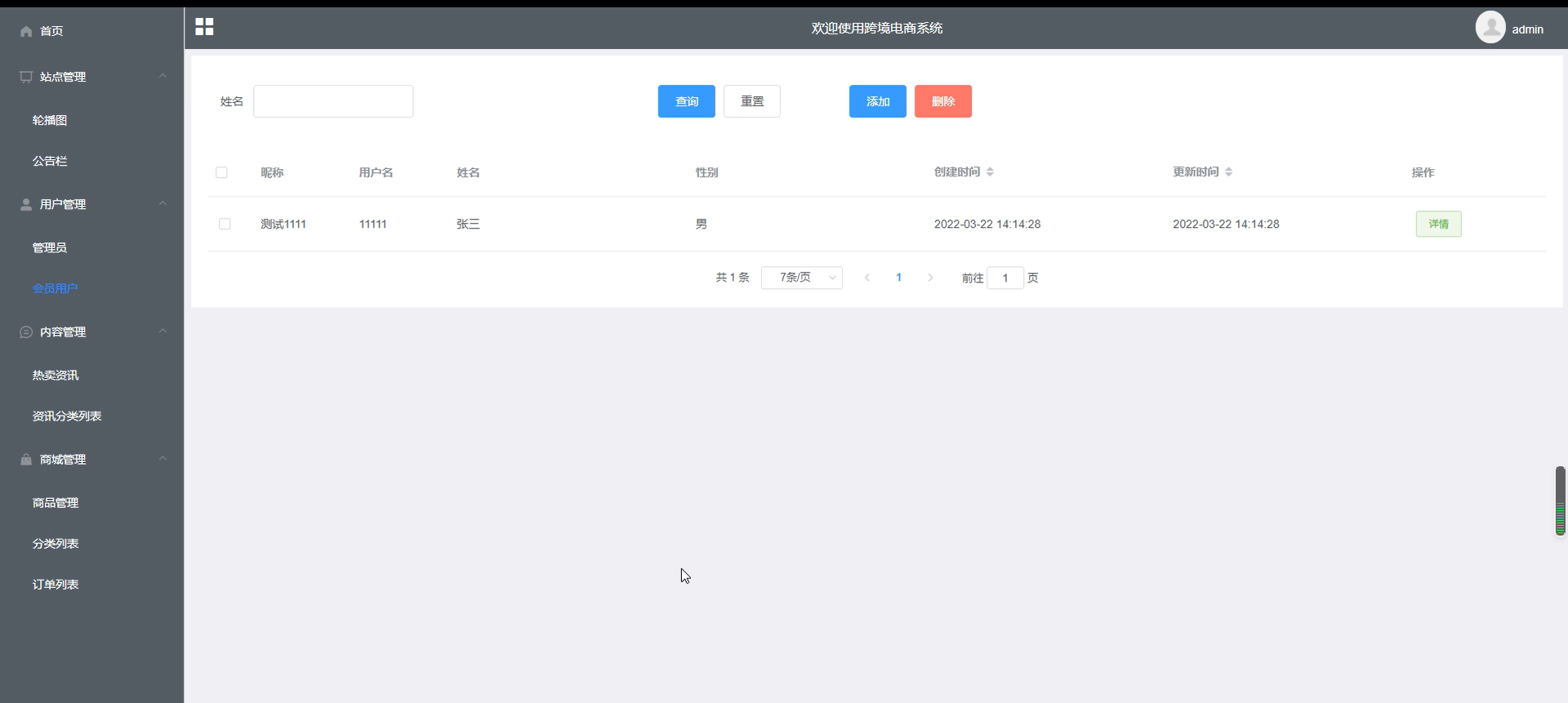 使用跨境电商系统的分为管理员和用户、两个权限模块。