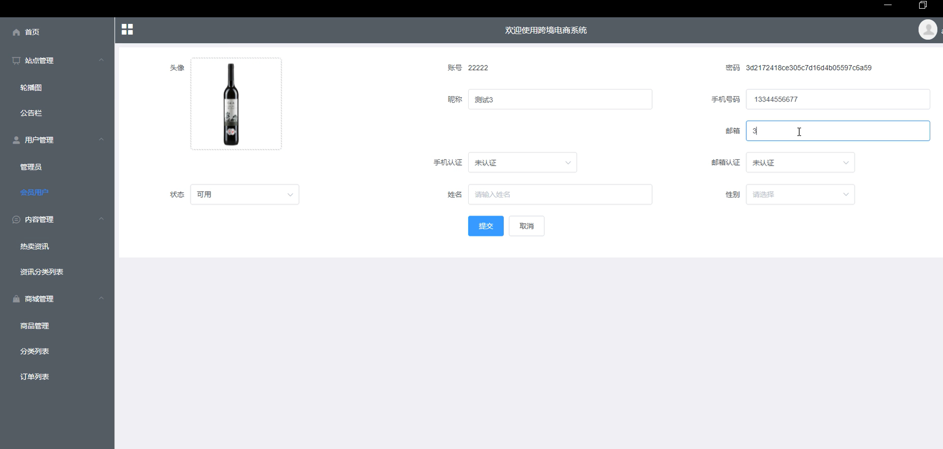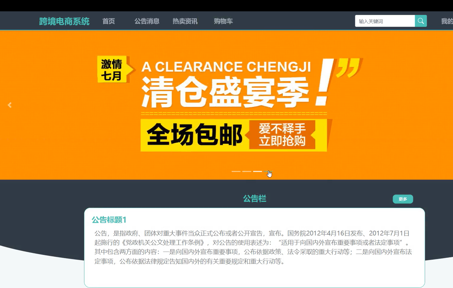 系统管理也都将通过计算机进行整体智能化操作,对于跨境电商系统所牵扯的管理及数据保存都是非常多的,例如管理员;首页、站点管理(轮播图、公告栏)用户管理(管理员、会员用户)内容管理(热卖资讯、资讯分类列表)商城管理(商品管理、分类列表、订单列表)等功能;会员用户:首页、公告消息、热卖资讯、购物车、我的(个人资料、密码修改、收货地址、收藏、订单)这给管理者的工作带来了巨大的挑战,面对大量的信息,传统的管理系统,都是通过笔记的方式进行详细信息的统计,后来出现电脑,通过电脑输入软件将纸质的信息统计到电脑上,这种方式比较传统,而且想要统计数据信息比较麻烦,还受时间和空间的影响,所以为此开发了跨境电商系统;为用户提供了方便管理平台,方便管理员查看及维护,并且可以通过需求进行内容的编辑及维护等;对于用户而言,可以随时进行查询所需信息,管理员可以足不出户就可以获取到系统的数据信息等,而且还能节省用户很多时间,所以开发跨境电商系统给管理者带来了很大的方便,同时也方便管理员对用户信息进行处理。