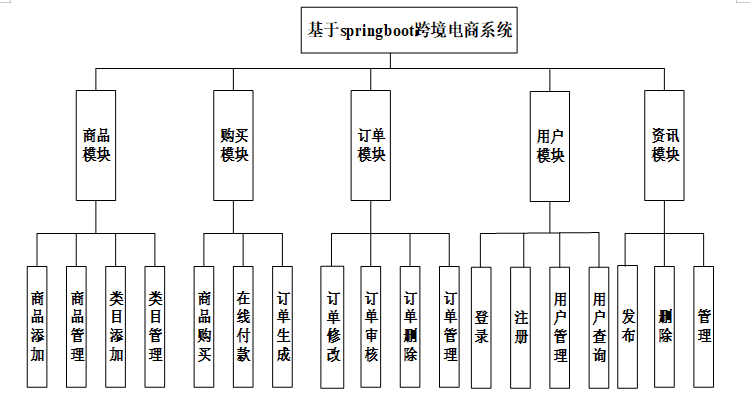 这些功能可以充分满足跨境电商系统的需求。此系统功能较为全面如下图系统功能结构如图4-3所示。