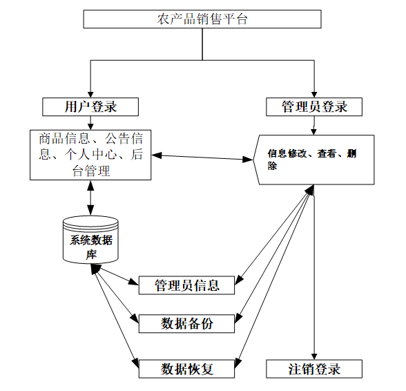 模块包括主界面,首页、个人中心、新闻分类管理、订单信息管理、用户管理、农产品推荐管理、管理员管理、系统管理、订单管理等进行相应的操作。