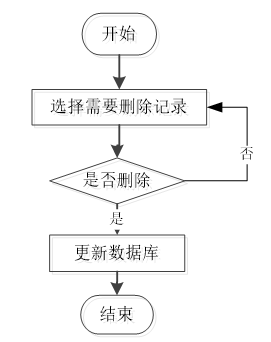 用户选择要删除的信息并单击Delete按钮。系统提示是否删除信息。如果用户想要删除信息,系统将删除信息。系统数据库删除信息。删除信息流程图如图3-5所示。