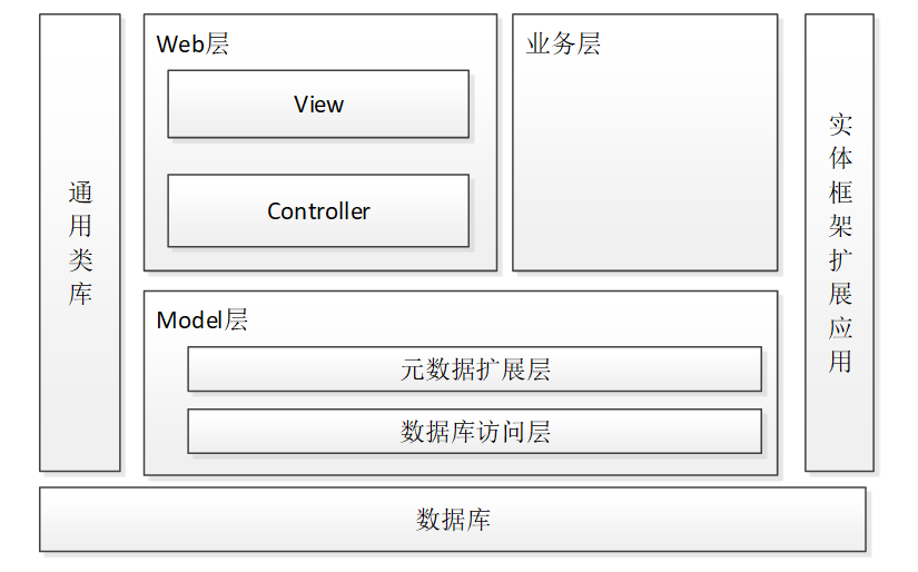 共享输液检测系统的架构设计主要分为可以3层,主要有Web层,业务层,Model层。其中web层还包括View层和Controller层,Model层包括元数据扩展层和数据访问层。