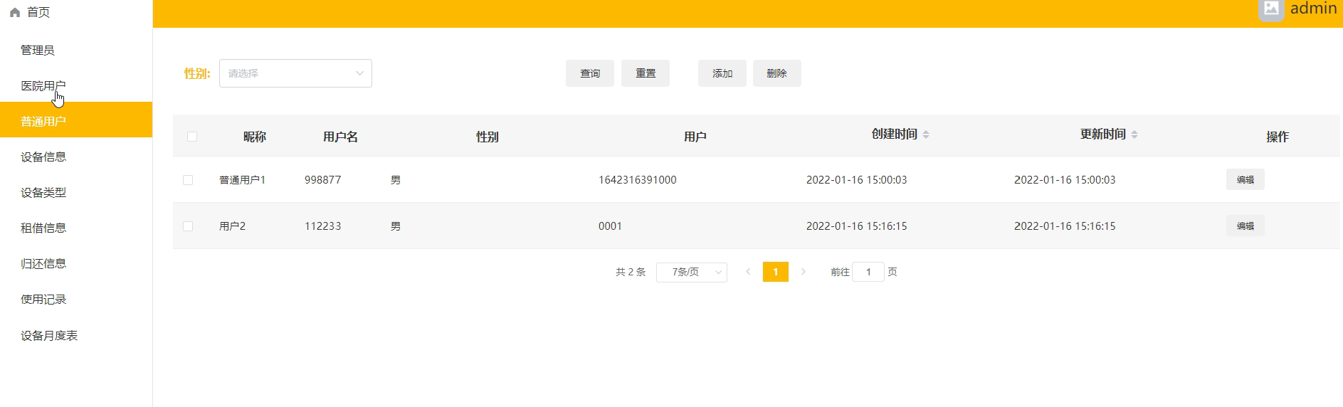 | 功能描述 | 用于医院用户管理 | |