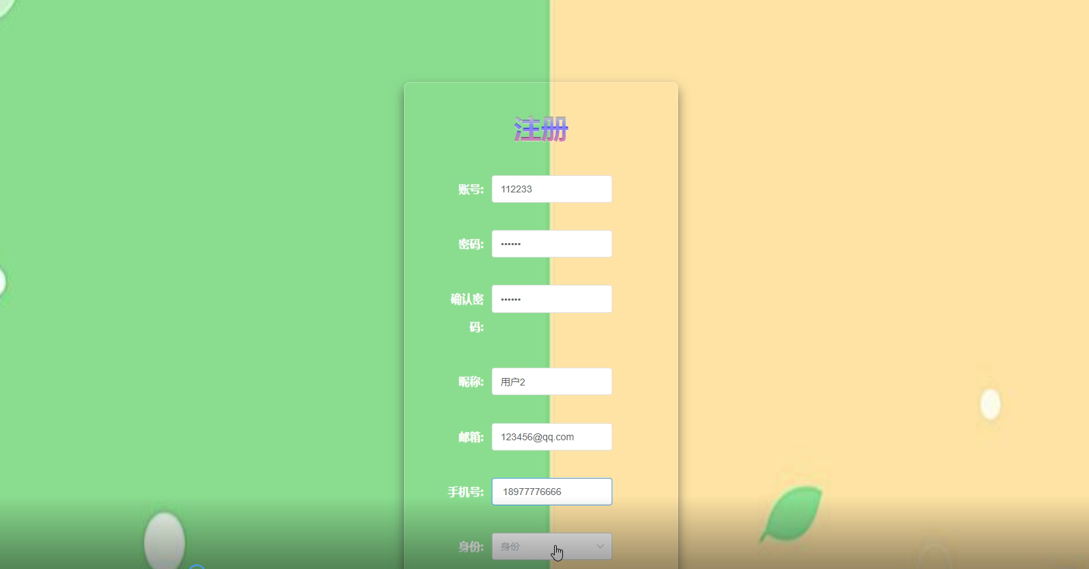 注册用户的功能如下: