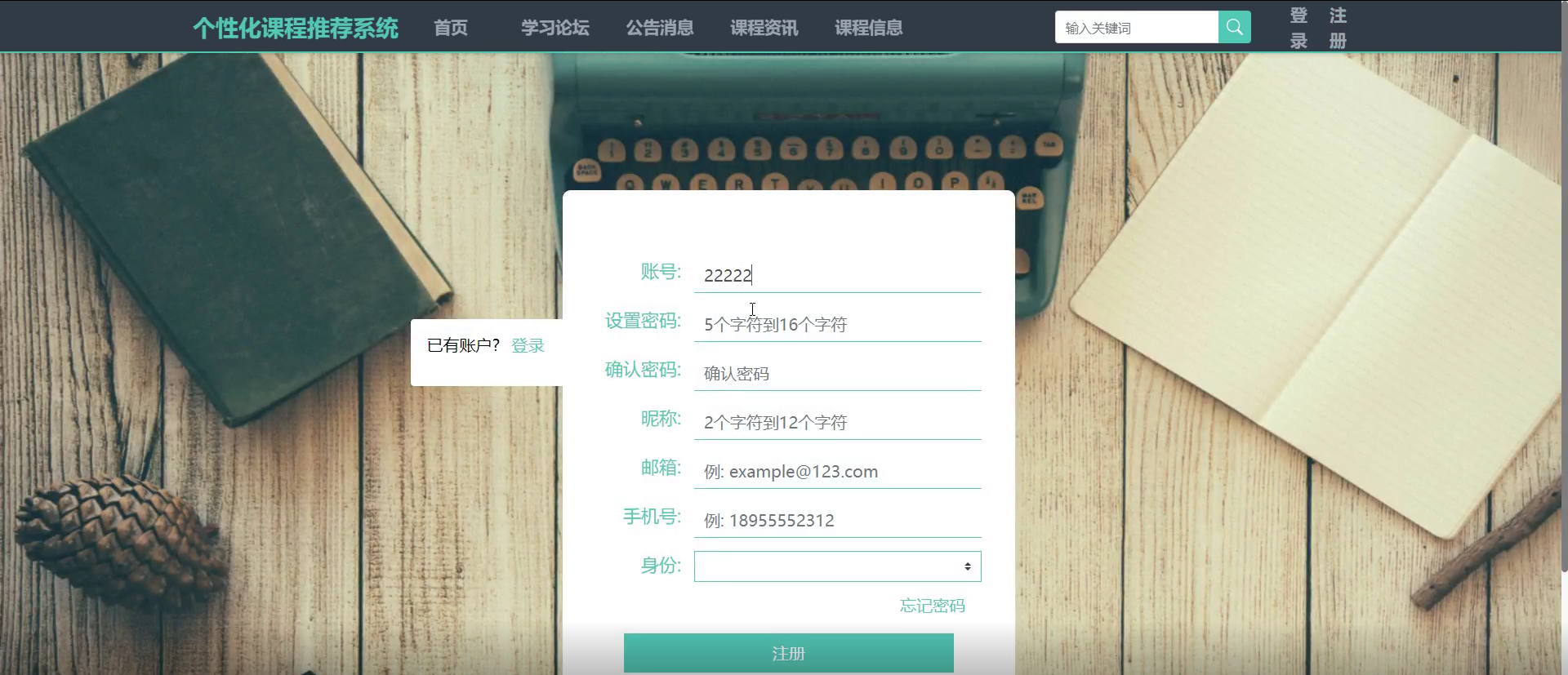 注册账号:学生填写个人信息,并验证手机号码。