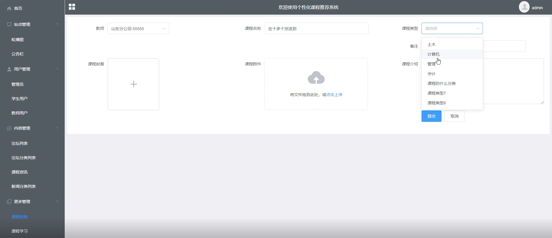 课程添加界面如下图所示。