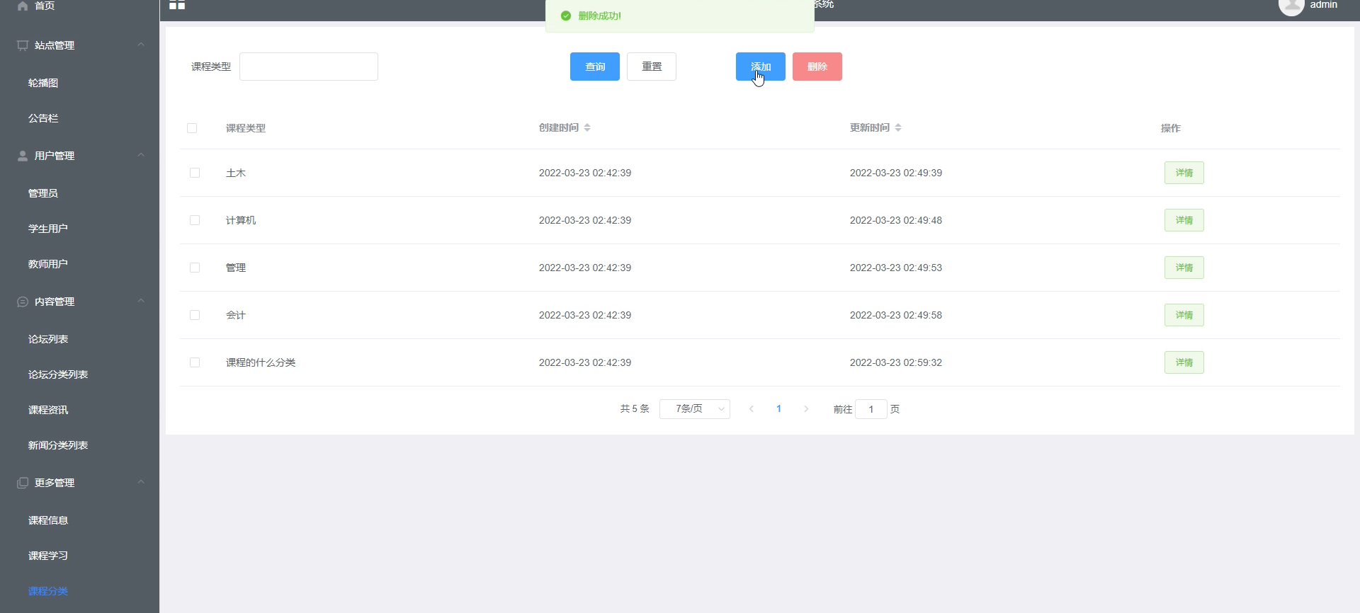 课程分类管理界面如下图所示。