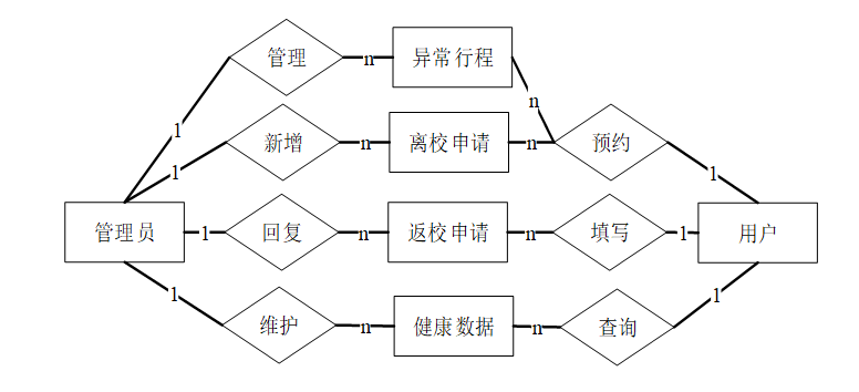 返校申请:存储用户的返校申请。包括返校申请内容,用户编号、用户姓名、类别、返校地区、是否发热、健康码、行程码等数据项。