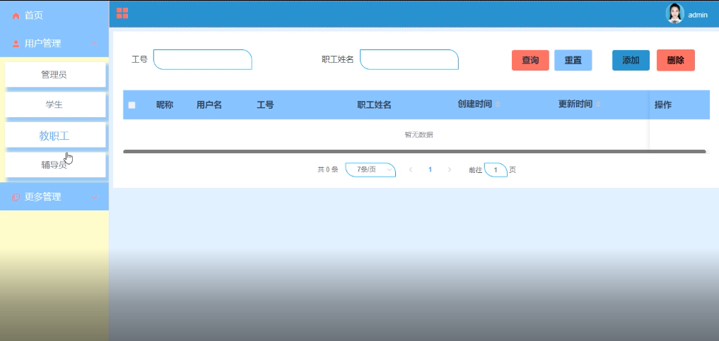 添加学生时,会给出数据填写的页面,该页面根据填写好的学生编号同样会事先发送Ajax请求查询编号是否已存在,数据填写好之后提交到后台,会调用相关服务在数据库中插入记录。