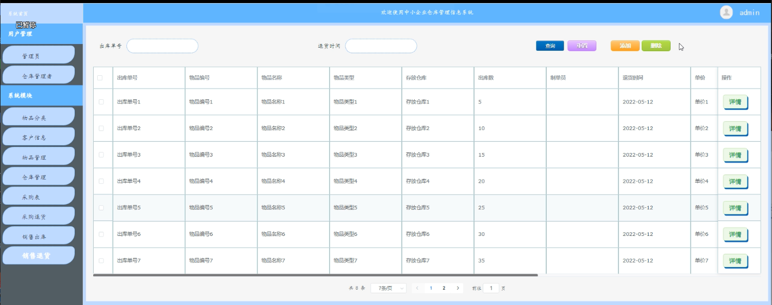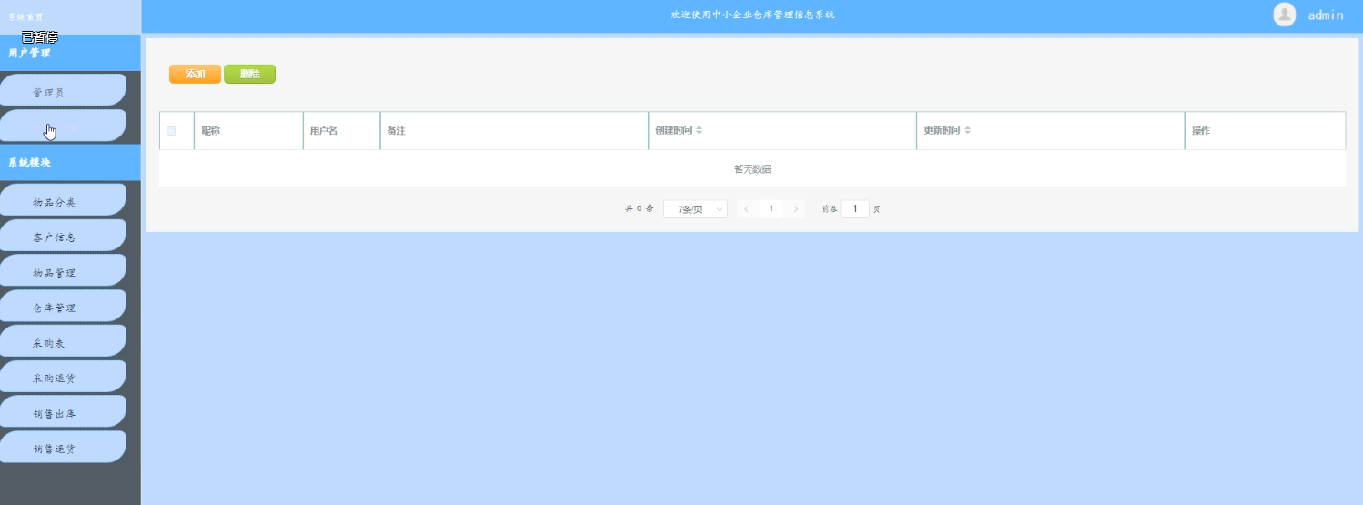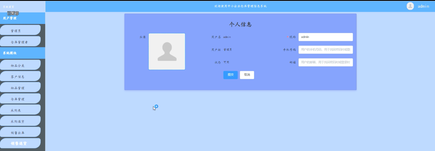 4.该系统能够完成用户管理、物品分类、物品管理、客户信息、仓库管理、采购表、采购退货、销售出库、销售退货等功能,做到所开发的系统操作简单,尽量使系统操作不受用户对电脑知识水平的限制。