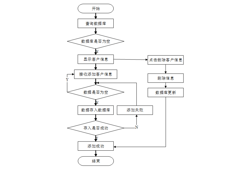 添加信息,编号系统使用自动编号模式,没有用户填写,用户添加信息输入信息,系统将自动确认的信息和数据,验证的成功是有效的信息添加到数据库,信息无效,重新输入信息。添加信息流程如图3-3所示。