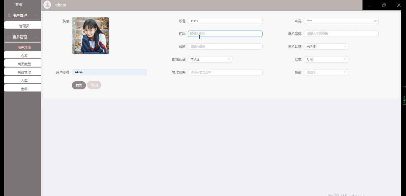 图5-5添加仓库信息界面图