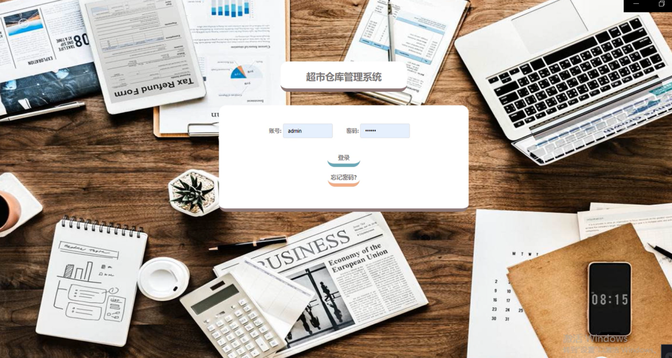 超市仓库管理系统,在系统登录页面管理员填写账号、密码等信息进行登录,如图5-1所示。