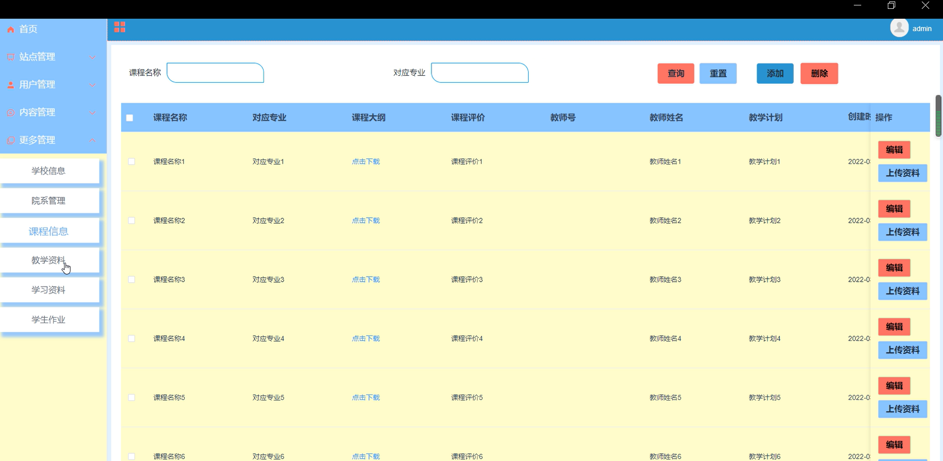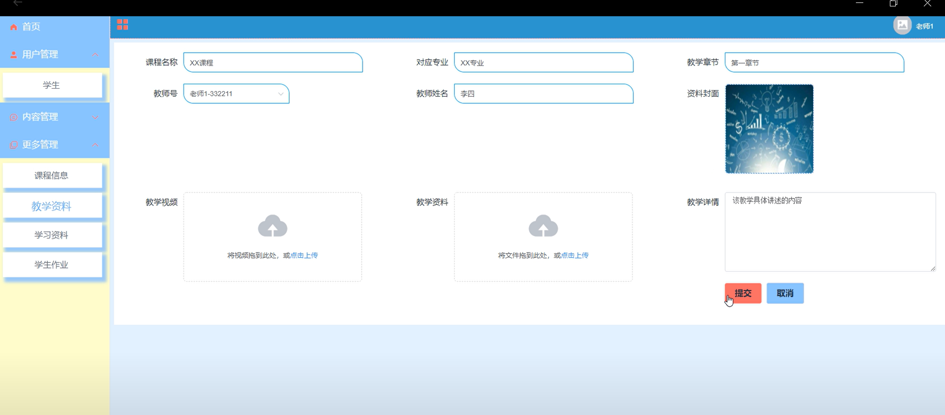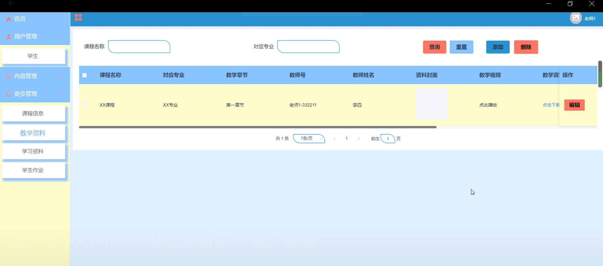 教学资料信息管理:对教学资料信息进行维护,添加、删除、修改信息。