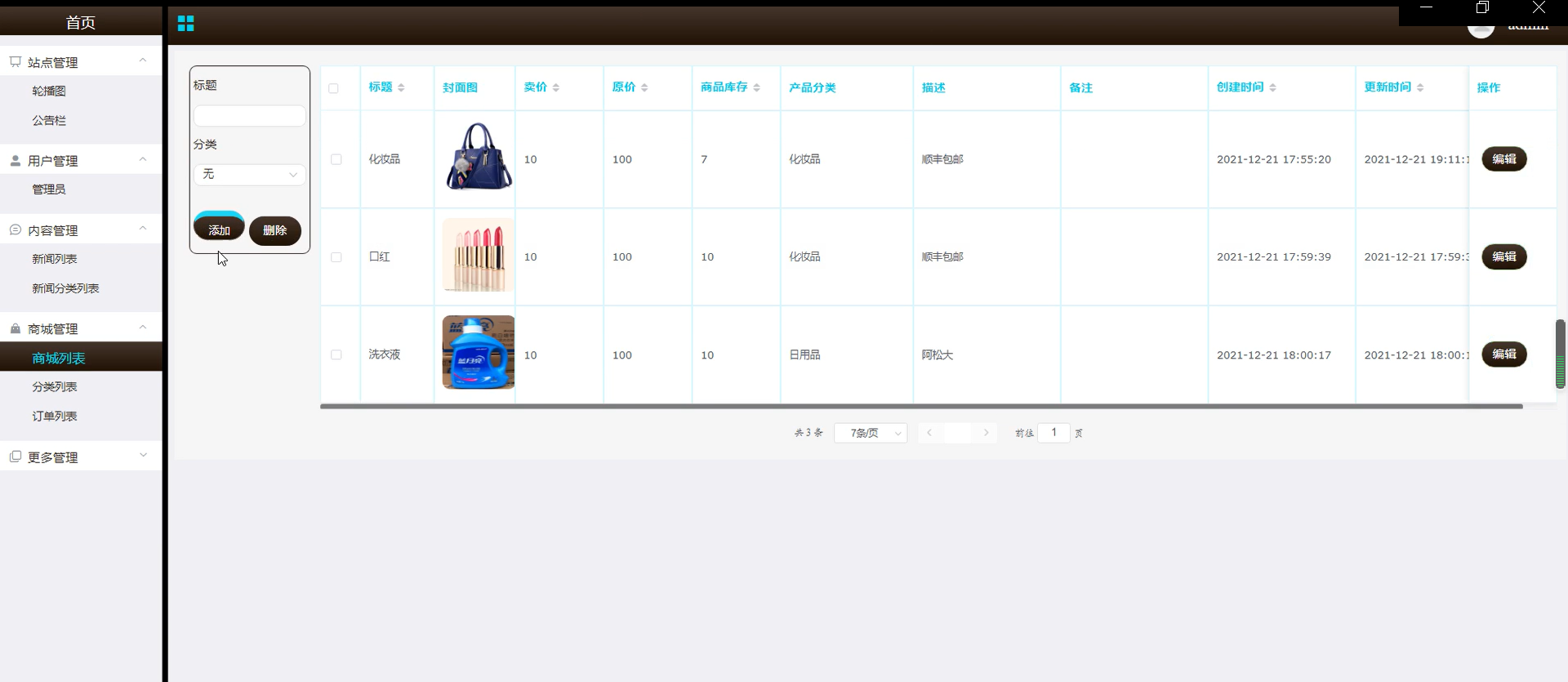 商品管理界面如下图所示。