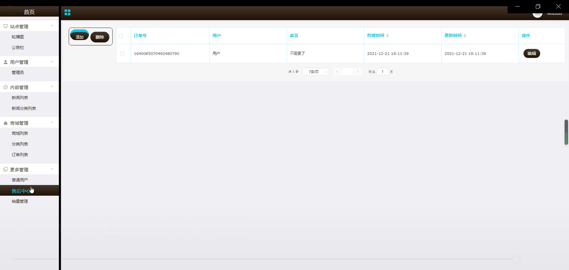 图5-8售后中心管理界面