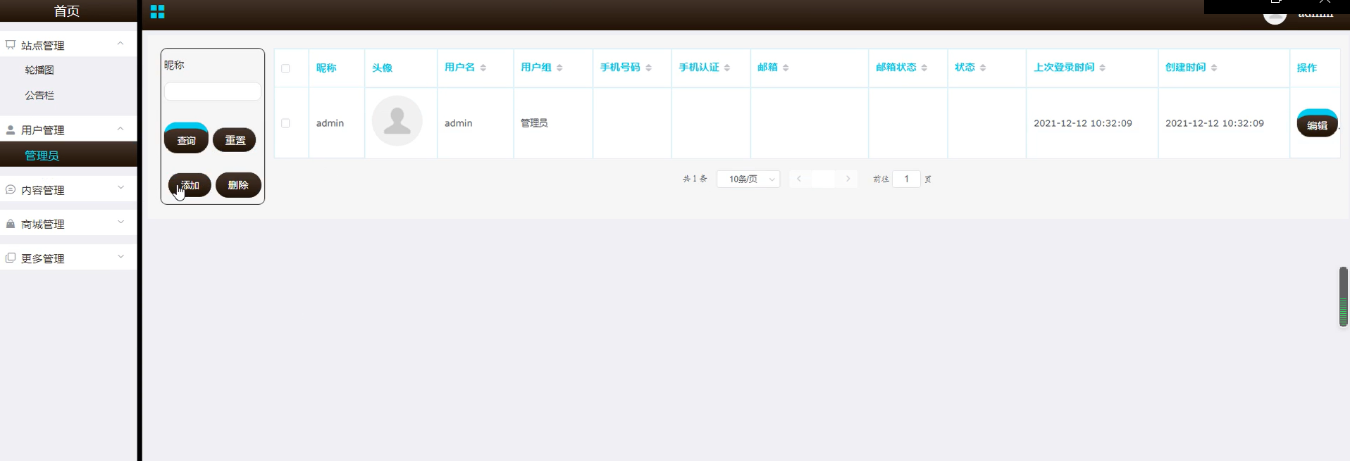 | 前置条件 | 管理员已经登录系统 | |