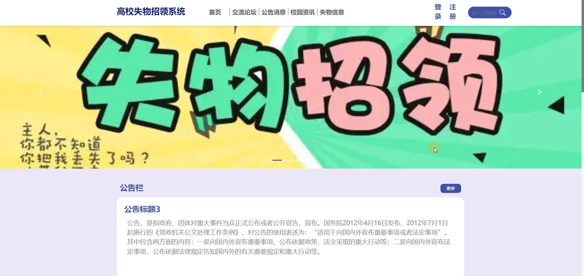 Key words: College lost and found system; Springboot framework; Mysql database