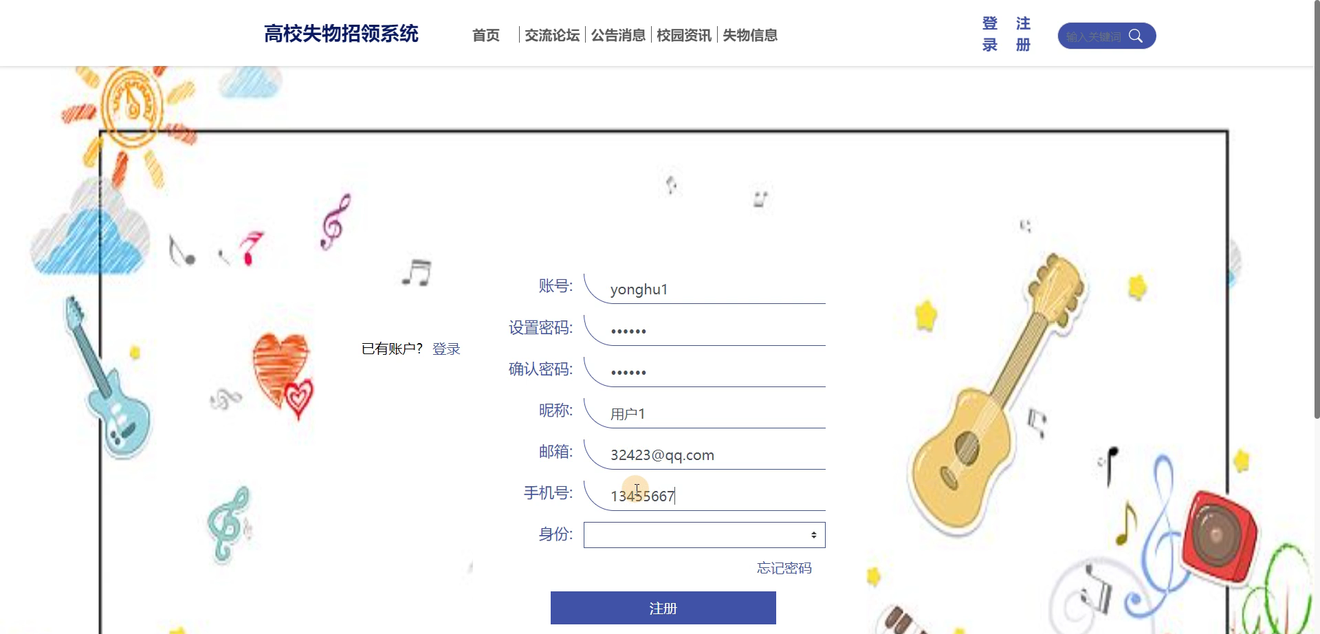 注册账号:用户填写个人信息,并验证手机号码。